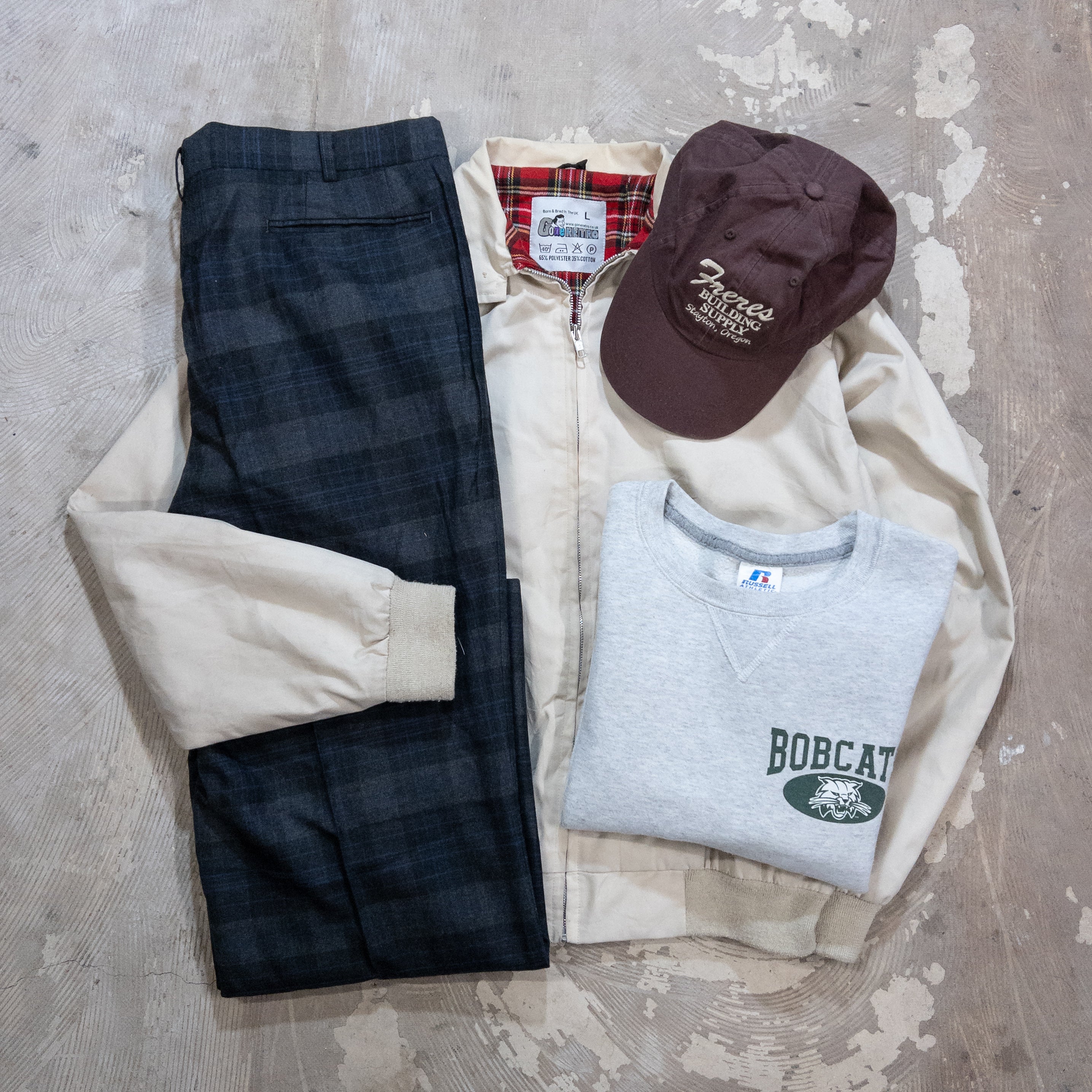 ハリントンを中心に組み上げる4点コーデです。構成イメージはこちら👇